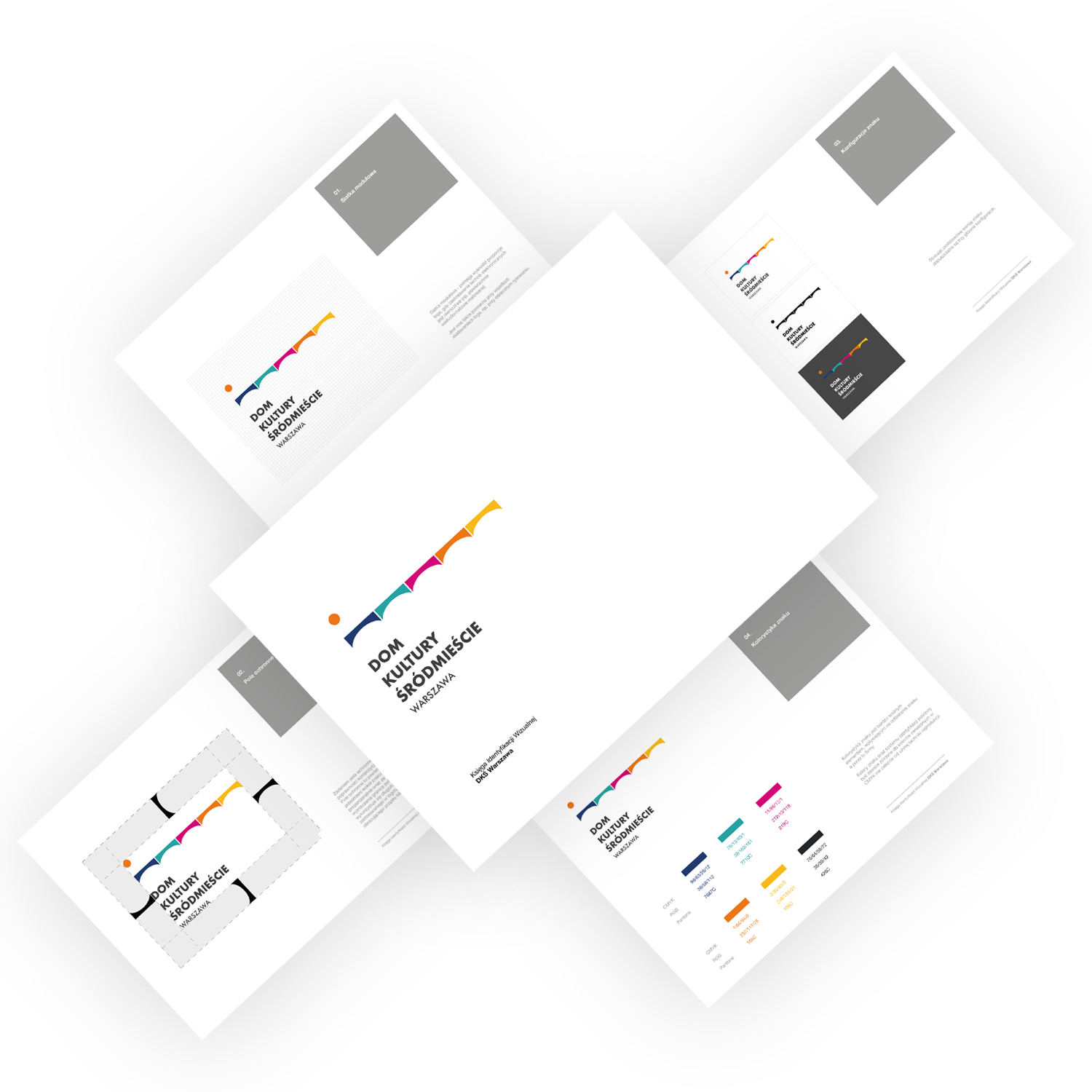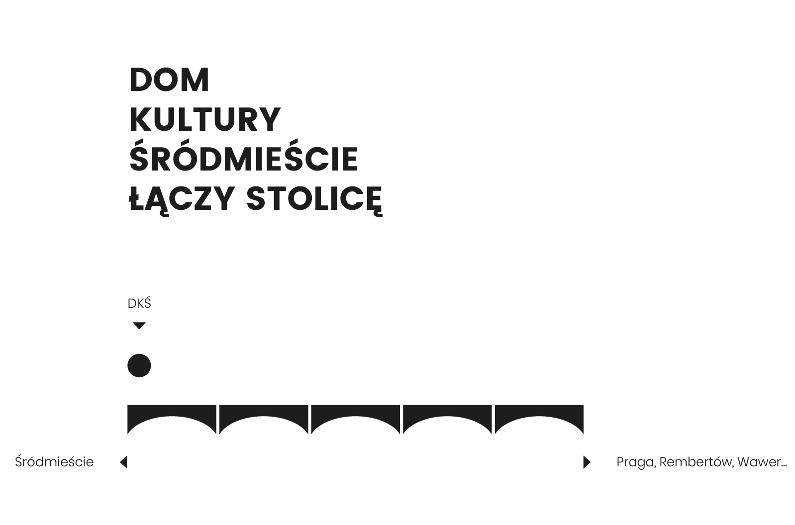 Logotyp przedstawia wizerunek mostu Poniatowskiego w Warszawie, który stanowi istotny element urbanistyczny który łączy dzielnice Pragę, Rembertów i Wawer ze Śródmieściem. Nad charakterystycznym profilem mostu umieściliśmy słońce, które wskazuje lokalizację głównej siedziby Domu Kulturyznajdującej się tuż za mostem, naprzeciwko Muzeum Narodowego. Ten element graficzny symbolizuje nie tylko fizyczną łączność między dzielnicami, ale również kulturową spójność, którą Dom Kultury Śródmieście reprezentuje jako centrum aktywności artystycznej i społecznej, integralnie związanej z życiem obu części stolicy. Każdy z elementów kolorystycznych logotypu został dopasowany do danej siedziby DKŚ.