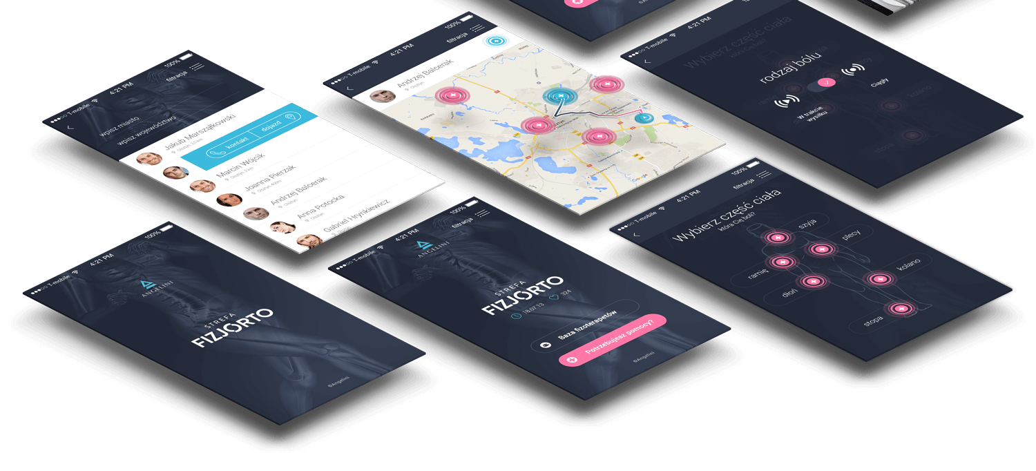 Naszym zadaniem było opracowanie aplikacji mobilnej, dającej możliwość szybkiej rejestracji wizyty u najbliższego fizjoterapeuty/lekarza.