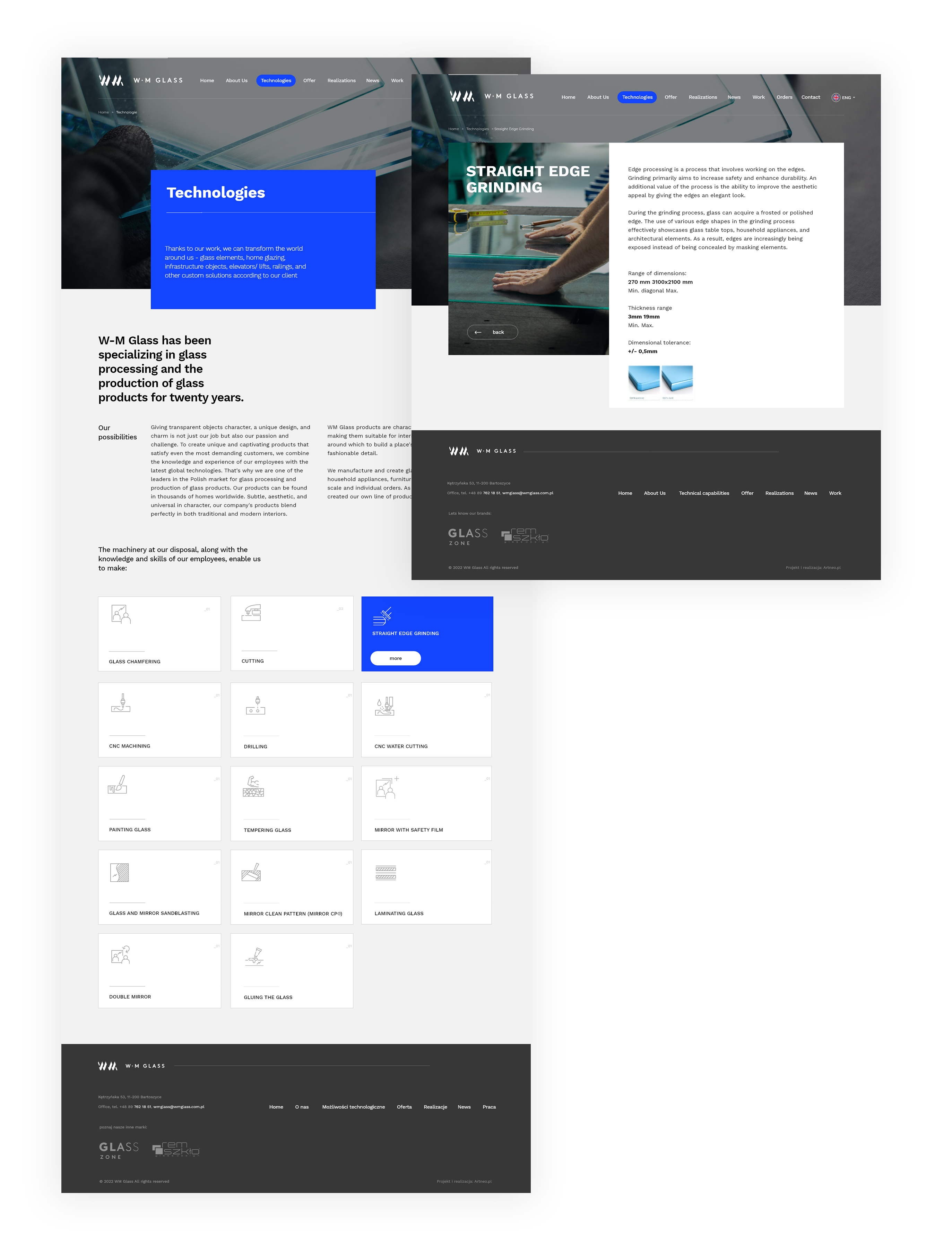 Projekt strony internetowej dla firmy "W-M Glass" miał na celu stworzenie atrakcyjnej, funkcjonalnej i profesjonalnej platformy online, która będzie efektywnie prezentować ofertę i osiągnięcia firmy, zachęcając potencjalnych klientów i partnerów biznesowych do współpracy oraz budując jej markę jako lidera w branży szklarskiej. Zastosowaliśmy odpowiednie technologie i podejście do designu oraz treści, dzięki czemu strona stanowi ważne narzędzie wsparcia biznesowego i komunikacyjnego dla "W-M Glass".