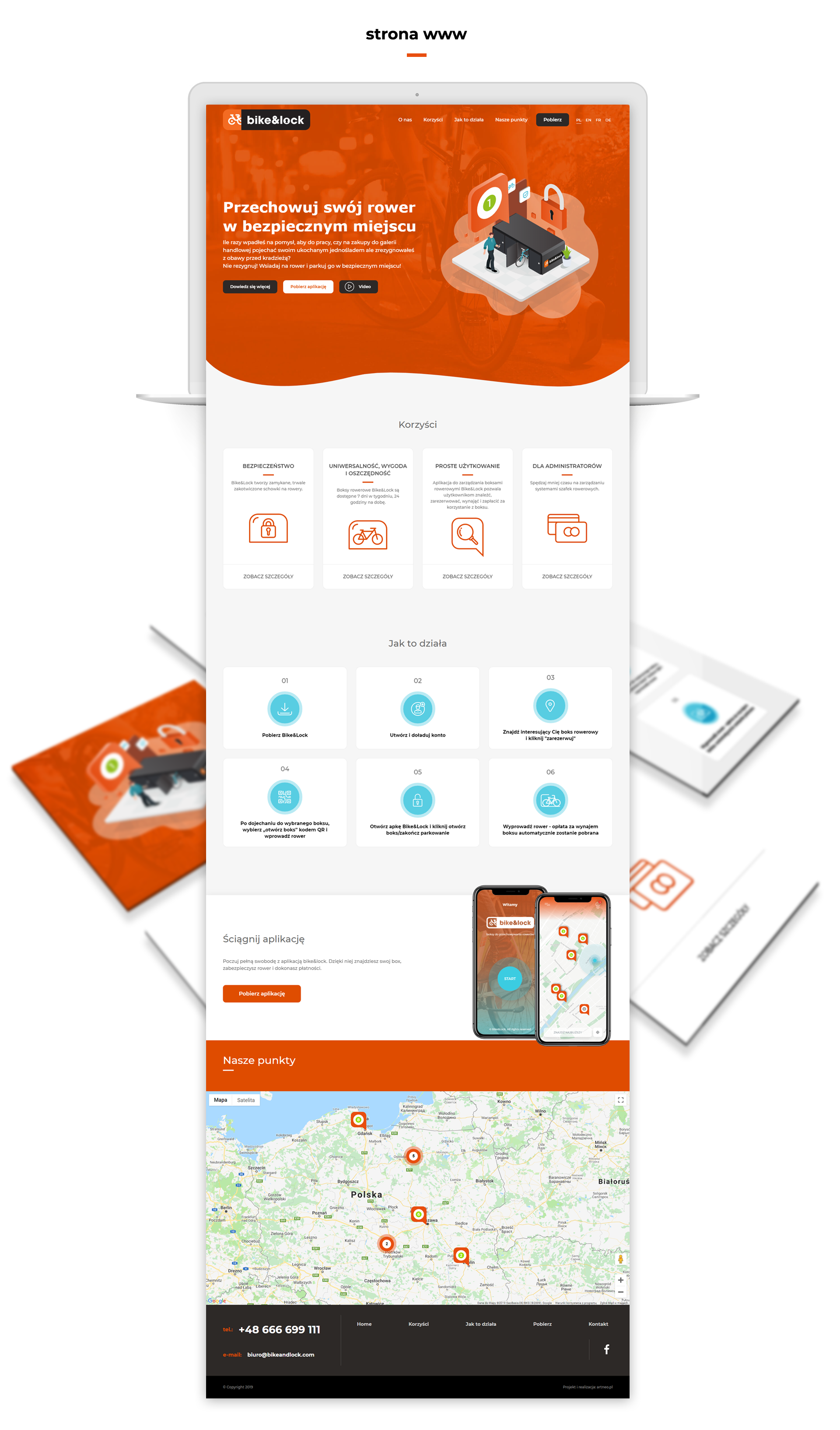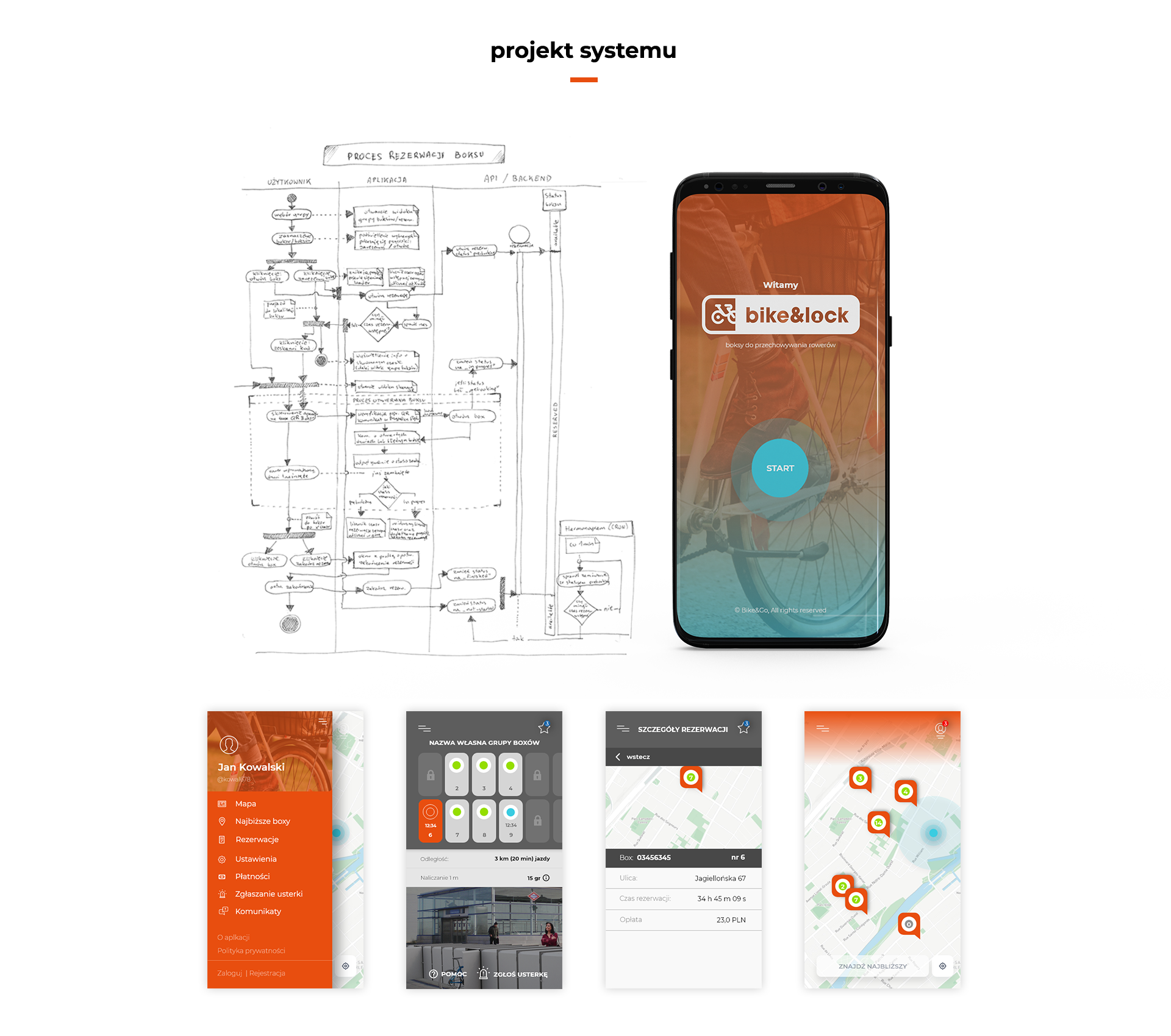 Projekt logo. Stworzenie aplikacji mobilnej umożliwiającej rezerwacje i obsługę boxu rowerowego. Przygotowanie interfejsu jak najbardziej przyjaznego użytkownikowi. Wdrożenie projektu w życie. Render 3D boxów. Przygotowanie wizualizacji.